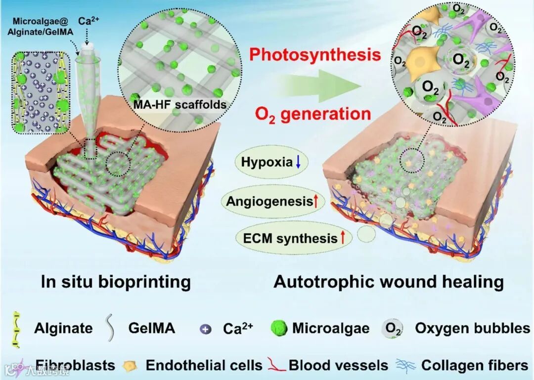 In Situ 3D Bioprinting Living Photosynthetic Scaffolds for Autotrophic Wound Healing