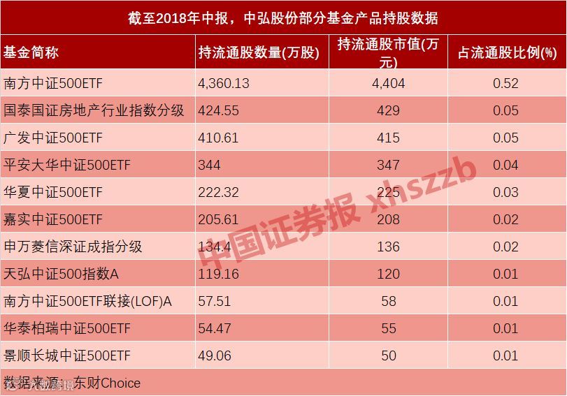 东财Choice数据显示,截至今年一季报,持有中弘股份的基金产品只有2只,但2018年中报显示,基金产品数量上升至49只。其中,南方中证500ETF在二季度逆势加仓931.34万股,持股数量达到4360.13万股,在49只基金产品中持股数量最多;另有6只基金产品的持有数量超过100万股。