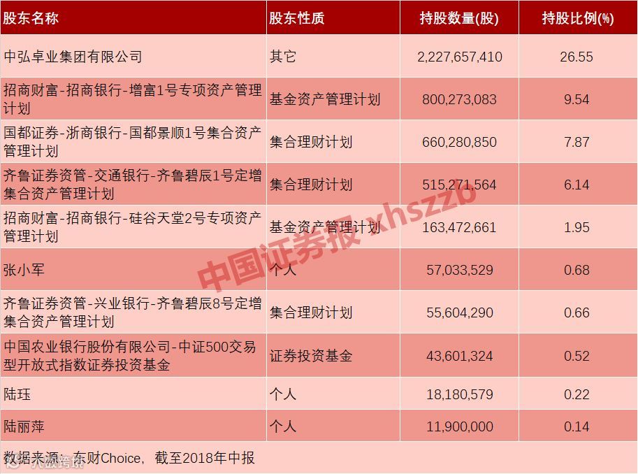 2018年中报前十大股东名单