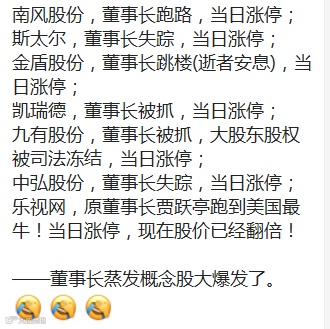 8月21日至9月5日的12个交易日,乐视网股价涨幅接近100%,从2.08元涨到4.15元;“仙股”中弘股份停牌前连续2个涨停,股价由此回到1元,暂时从退市的边缘被拉回。