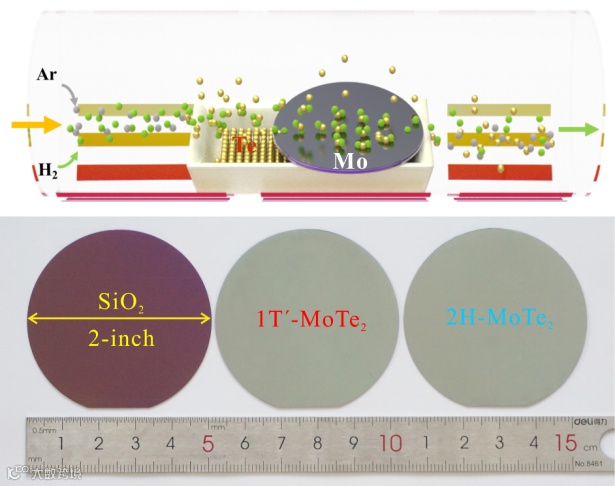 在本研究中,通过原位金属转化范德华生长法将预先沉积的Mo膜转化为二维MoTe2。通过控制生长时间,可以分别得到2英寸级二维1Tʹ(半金属)和2H(半导体)相MoTe2样品,具有良好的大面积均一性和高结晶质量。得益于简单的生长策略,二维MoTe2的厚度可以通过初始Mo膜的厚度精确控制,实现从少层到厚膜的连续调控。