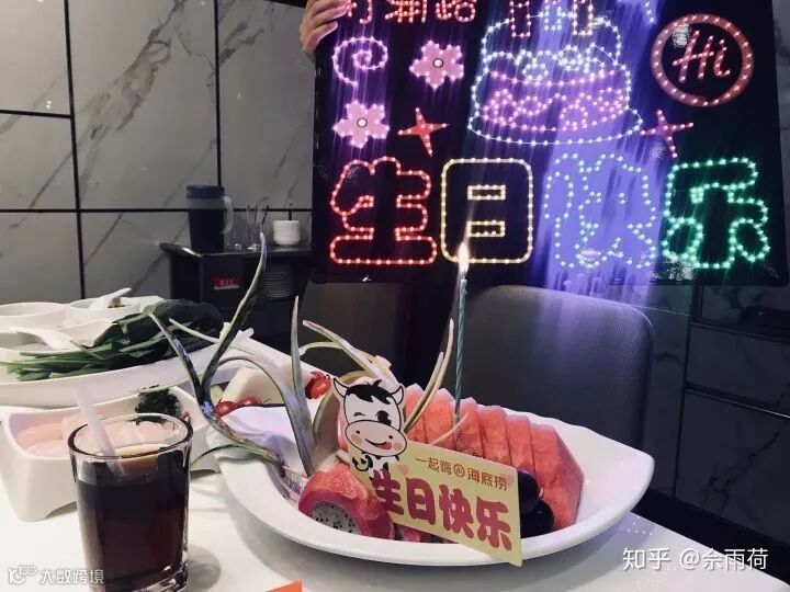 一位刚领完结婚证去海底捞吃饭庆祝的小情侣,被服务员意外看到了结婚证,立刻为其准备了一个水果拼盘,并配上“marry you”的音乐,让两位新人十分感动。为顾客过生日,准备果盘放生日歌,在海底捞更是家常便饭。