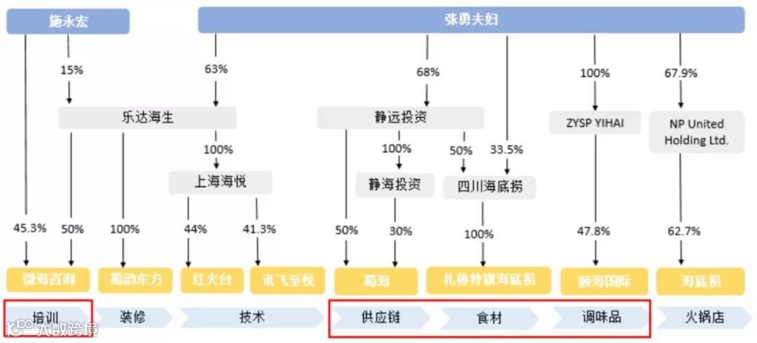 海底捞及其关联公司股权结构图