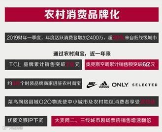 同时,优质的品牌和服务正在快速向三、四线城市和农村下城,城乡同享数字经济发展成果。2019财年一季度,淘宝年度活跃消费者较上季度增加了2400万,超八成来自低线级城市。进驻农村淘宝的品牌中,仅时装就有3万个以上,菜鸟物流使次日达服务在大城市之外越来越普及。对文化产品的需求也在狂飙猛进,大麦网统计,贵阳市以204%的剧场票房收入位居去年最具成长性的城市榜首。