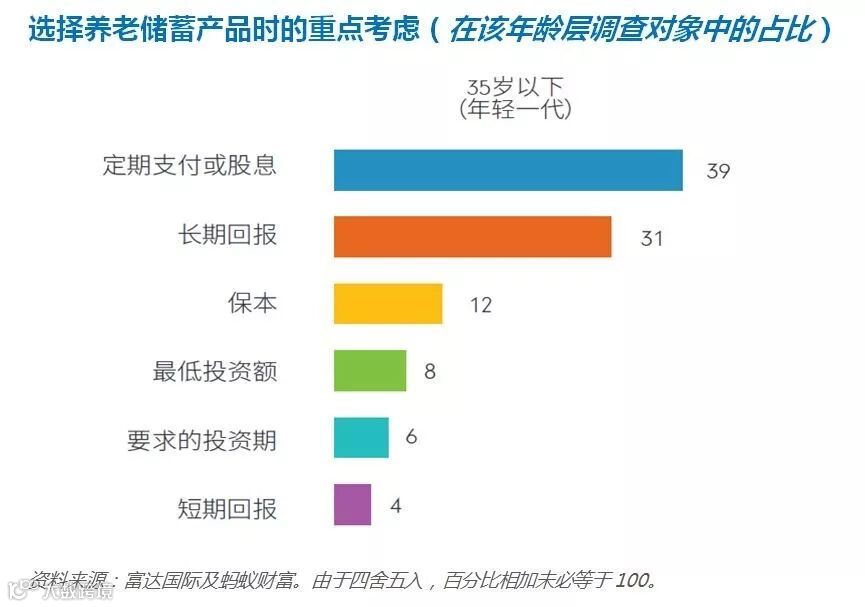 年轻一代对有效的养老投资策略也处于一知半解的状态。在购买养老投资产品时,只有不到三分之一的人表示会优先考虑长期回报。