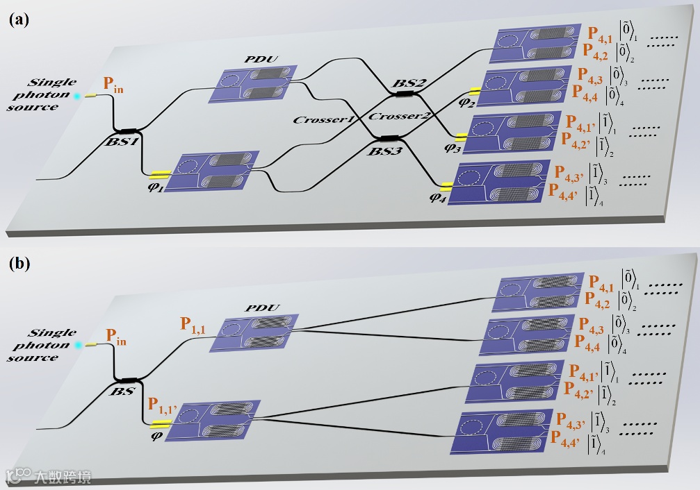 将上述光子倍增模块作为一个基本单元(图1(b)),通过不同的级联设计,就可以制备出各种不同类型的多光子态,以满足量子信息领域的不同应用需求,如图1(c)的Fock态、图3(a)的cluster态以及图3(b)的GHZ态。
