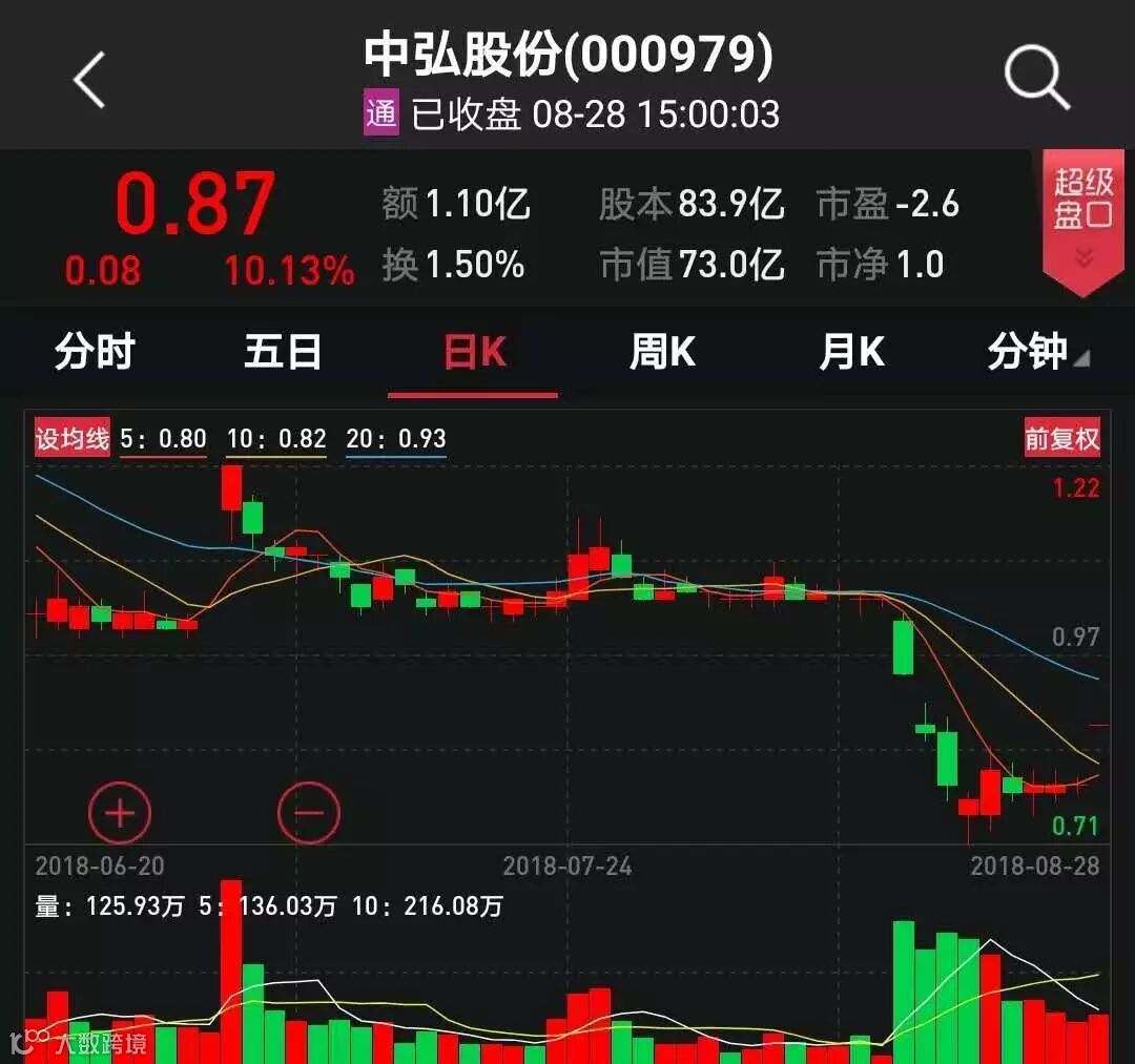 中弘股份8月28日晚间公告,公司股票已连续10个交易日(8月15日至28日)收盘价格低于股票面值(即1元)。若公司股票连续20个交易日的每日股票收盘价均低于股票面值,深交所有权终止公司股票上市交易。