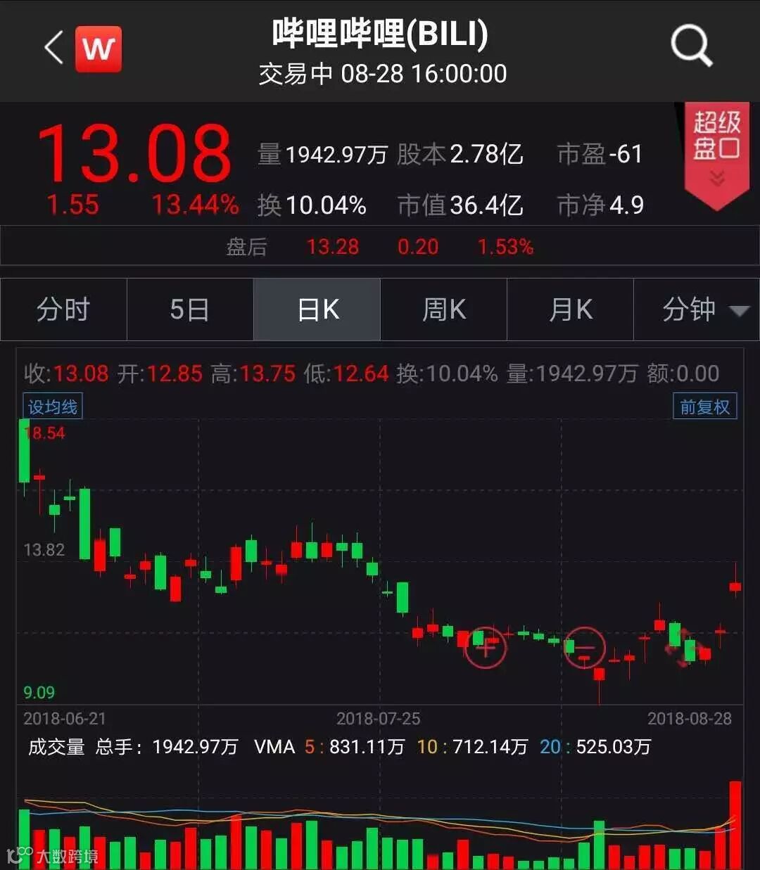 中概股涨跌互现 哔哩哔哩涨逾13%