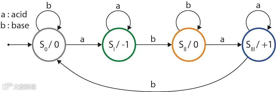 图4. 酸碱驱动的分子有限自动机。