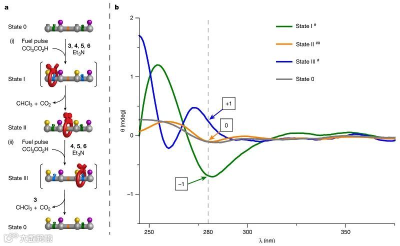 图3. 脉冲化学燃料驱动的分子棘轮1的圆二色谱。图片来源:Nature