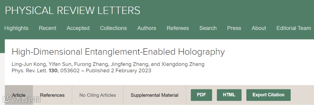 近日,北京理工大学物理学院张向东教授课题组基于高维轨道角动量纠缠态,实现了高维量子全息和图像安全加密。相关成果以“High-dimensional entanglement-enabled holography”为题发表在国际物理学顶级学术期刊《物理评论快报》[Phys. Rev. Lett. 130, 053602 (2023)]上。北京理工大学物理学院孔令军研究员、孙亦凡副研究员为该论文的共同第一作者,北京理工大学物理学院张向东教授为论文通讯作者,北京理工大学物理学院张福荣博士、张景风博士也为该工作做出了重要贡献。该研究工作得到了国家自然科学基金委的大力支持。