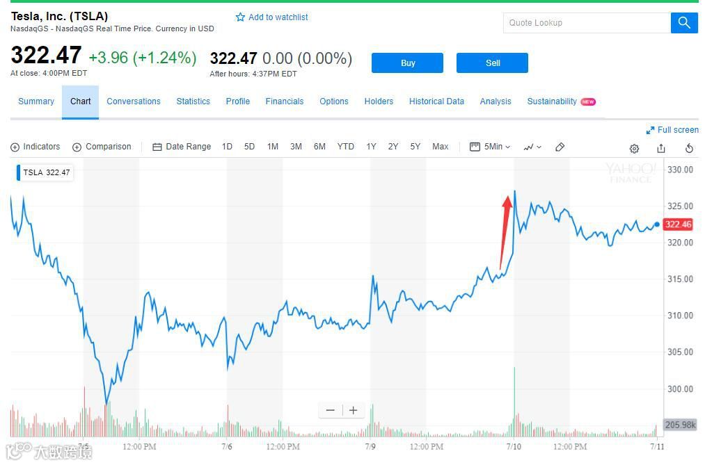 特斯拉与上海临港签署纯电动车项目投资协议的消息公布后,美东时间7月10日,特斯拉股价在美股盘前涨幅扩大至2.4%,当天高开将近2%,盘初一度涨近3%,最终上涨1.24%,走强于大盘。