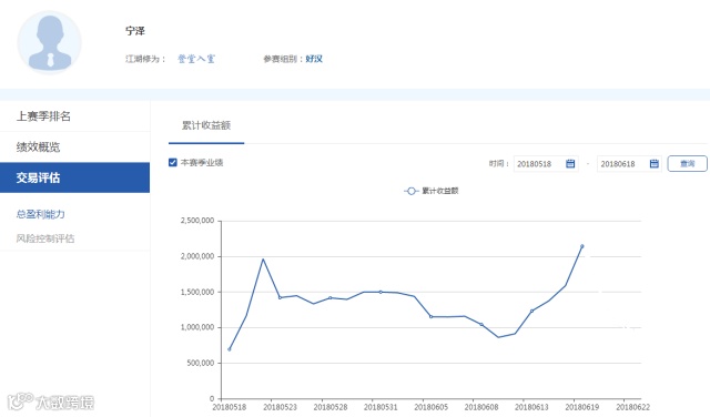 无问西东,实力鉴证。第九届海通期货笑傲江湖实盘大赛于5月18日隆重开赛,赛程为半年。大赛一经开启,便吸引了各路高手进入江湖,一较高下,截止6月18日有7230位报名参加本届笑傲江湖实盘大赛。今天,一起看看好汉组哪些高手脱颖而出。