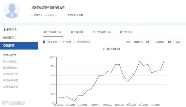 今天我们要介绍的一位好汉组的突出选手是亿佳信(珠海亿佳信资产管理有限公司)。