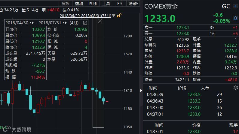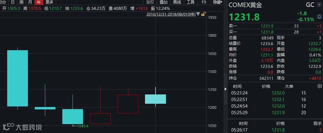 而8月1日中证君截稿时,COMEX金价在1230美元/盎司一线,仍在套牢之中。