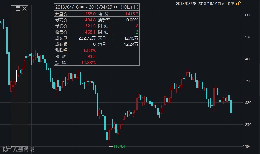 2013年黄金价格全年下跌28%。4月份,国际金价从1577美元/盎司大幅下跌至1321美元/盎司。就在华尔街空头大鳄肆虐之际,“中国大妈”横空出世,全国金店兴起一轮“抢金潮”,带动金价出现短暂反弹。“中国大妈”的抄底时间集中在4月中下旬,抄底成本在1321.5-1484.8美元/盎司之间。华尔街日报专门创出“dama”一词形容中国大妈的疯狂行为。