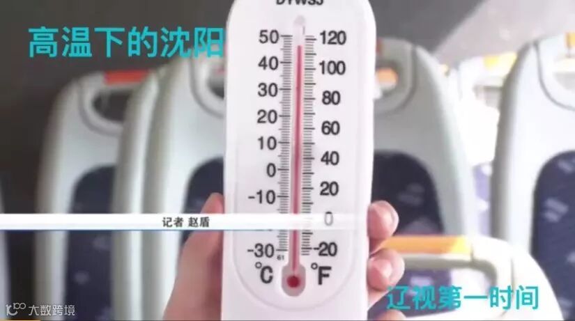 特别是沈阳,近日气温最高已达到37.6℃,这是有气象记录以来沈阳第二高的温度。辽宁卫视的一位记者拿着温度计到一台没有安装空调的公交车上测了一下,结果发现竟有46℃!