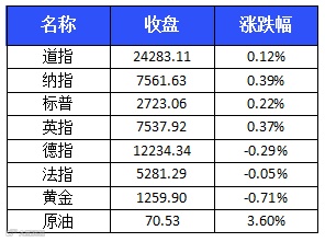 美东时间周二,在经历周一的下跌之后,市场的悲观情绪有所缓和,美股三大股指小幅上涨,能源股、科技股表现亮眼。截至收盘,标普500指数上涨5.99点,涨幅0.22%,报2723.06点;道琼斯工业平均指数上涨30.31点,涨幅0.12%,报24283.11点;纳斯达克综合指数上涨29.62点,涨幅0.39%,报7561.63点。