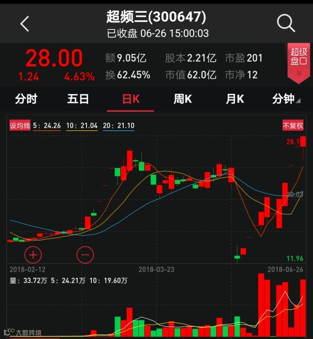 超频三6月26日晚公告,公司股票交易异常波动,经核实,公司近期经营情况正常,不存在应披露而未披露的重大事项。公司同时提示风险称,目前公司动态市盈率为269.2倍,远高于LED行业平均水平。