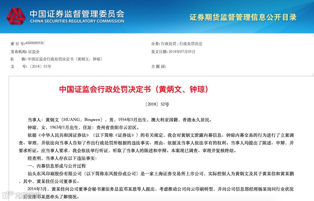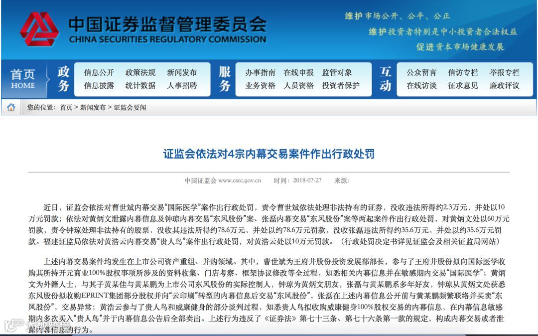 证监会公布的行政处罚决定书显示: