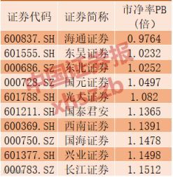券商股市净率排行