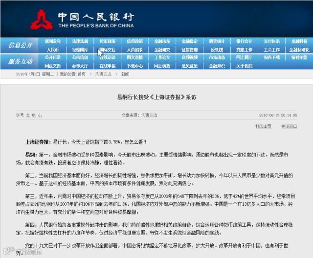 中证君注意到,易纲上一次接受记者采访,谈的恰恰就是近期股市波动的问题。