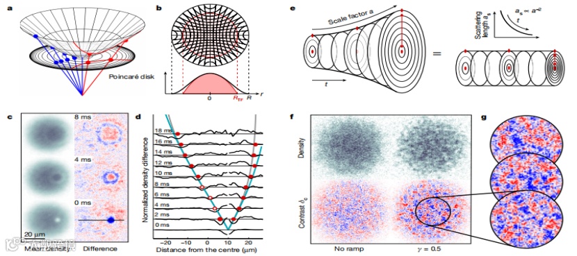 德国海德堡大学的Celia Viermann教授研究团队研究了一种在二维玻色-爱因斯坦凝聚态中的量子场模拟器,该套实验系统可以研究量子物理学中的基本问题,如时间演化弯曲空间中的纠缠、一般视界的连接、热力学和广义相对论。该套量子模拟器系统通过简易升级还可以改变时间上的空间曲率,进而研究加速和减速时代的宇宙学,或将系统扩展到三维,将实验平台扩展到多原子系统,可以实现对非传统的几何时空的研究。
