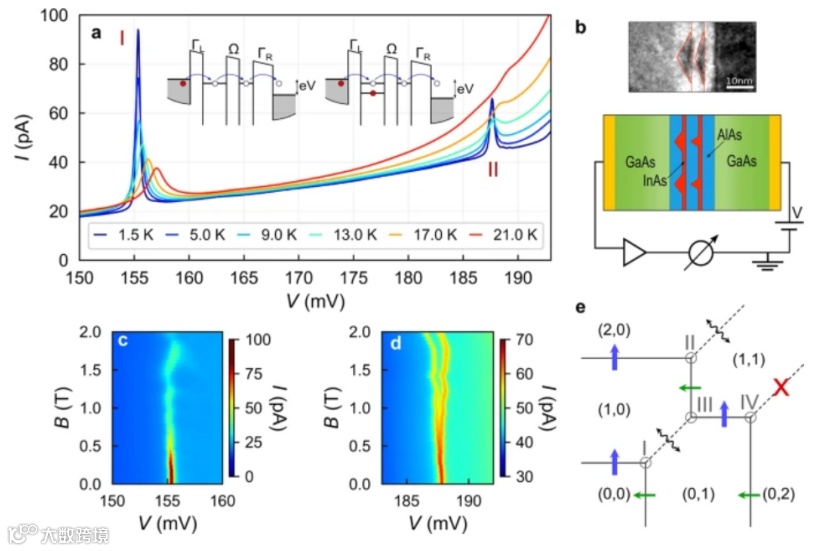 近日,德国莱布尼茨-汉诺威大学的Olfa Dani教授研究团队通过砷化铟双量子点测量了电流中的共振峰,并研究了在1.5-21 K范围内双量子点展宽随着温度增加的特性;同时,通过对峰值的研究,确定了耗散模型的参数,研究得出,在实验的温度范围内,失相时间约为100皮秒。假设相同的模型参数在较低的温度下有效,可以预测相干时间可达10纳秒,对此,该研究团队认为他们的工作能够提供确定所有涉及使用量子态所必需参数的方法。