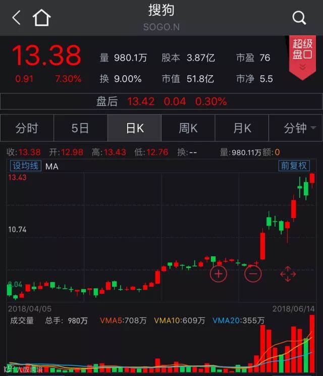 中概股涨跌互现 搜狗涨逾7%