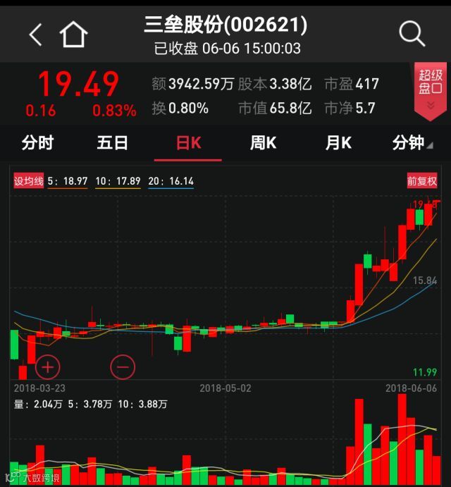 三垒股份在纳入“中植系”后,在教育领域频频出手。先是收购楷德教育,出资1.1亿元成立三家教育业务全资子公司,现在又并购早教类教育机构。在2017年年报中,公司提出了明确的教育发展方向——布局国际教育培训以及留学后市场的整合、扩张,延伸布局早、幼教高端教育及互联网教育等服务板块,打造协同完整的低龄教育产业生态体系。5月23日以来,公司股价累计大涨35.35%,同期上证指数下跌3.09%。