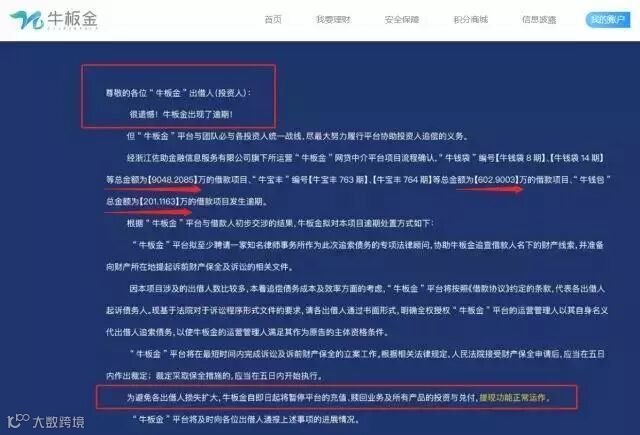 但是,在即将过去的这一周,小徐头顶炸了一声雷,他购买了50万元P2P理财产品的平台——牛板金“爆雷”了!