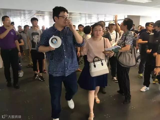 7月4日上午王旭航(持扩音器者)出现在公司总部