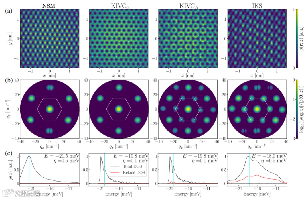 由于人们在魔角扭曲双层石墨烯(MATBG)中发现了超导性和相关绝缘体,因此研究者们一直在积极尝试确定整数填充处基态的性质。虽然人们普遍认为这种性质是自旋和谷空间中的自发对称性破缺引起的,但理论工作已经确定了大量能量接近的候选状态,例如U(4)×U(4)manifold中的绝缘体,一种向列半金属(NSM),以及不相称的凯库勒螺旋(IKS)。然而,基态顺序的明确实验识别已被证明是困难的。测量局部状态密度(LDOS)的扫描隧道显微镜(STM)是区分这些相的有前途的工具。到目前为止,MATBG中的STM测量主要集中在莫尔尺度的LDOS中的调制。STM已经发现了假定的对称破坏转换的“级联”证据,但尚未检测到相关的顺序参数。以Kramers-intervalley相干(KIVC)状态和NSM为例,它们被认为在电荷中性点(CNP)竞争。虽然两个相的DOS之间存在数量差异(它们分别是间隙和半金属),但在有限的能量分辨率下,它们的DOS在实践中非常相似,难以辨别。此外,LDOS的莫尔尺度空间调制主要由AA区域的三角形晶格处的峰控制。这是所有相共有的平坦带的特征,因此不足以识别基态。需要一种能够直接测量对称破缺的有序参数的探针。