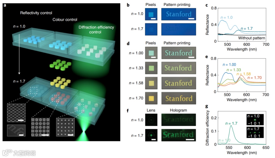 近日,美国斯坦福大学的Mark L. Brongersmai教授课题组展示了光流体和超表面光学的融合如何可以成为光场的动态控制并带来概念上的新平台。作者首先演示了超表面构件,它们的散射特性对介电环境表现出极端的敏感性。然后,这些构件被用于在微流控通道内创建基于超表面的平面光学,其中具有不同折射率的液体可以被引导来操纵它们的光学行为。作者演示了超表面颜色像素的强度和光谱调整,以及按需光学元件。最后,作者演示了在一个集成的元光流控平台上的自动控制,以打开新的显示功能。相关工作发表在《Nature Nanotechnology》上。(郑江坡)