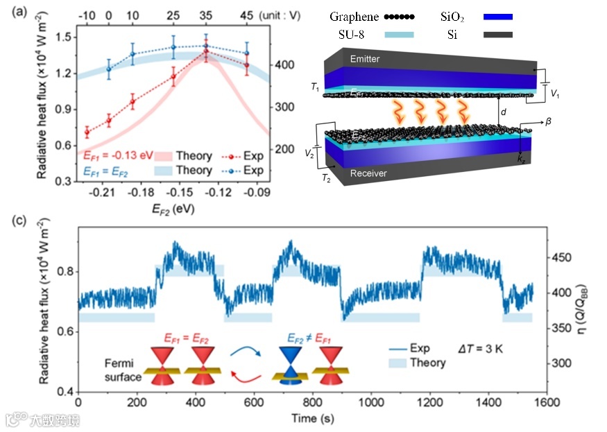 近日,浙江大学何赛灵教授研究团队通过实验研究了两个石墨烯/SU-8异质结间的NFRHT,通过改变发射端与接收端石墨烯的费米能级,在间距80nm下实现了高达32.2%的热流调制比。通过调控石墨烯费米能级可以实现SPP模式的耦合或解耦,并打破共振模式的对称性,获得了比其他已知方法更高的NFRHT调控效果。另外还发现随着间距的减小,NFRHT的调制效应越强,与利用波动电动力学方法计算得到的结果相一致,这与石墨烯SPP的近场效应有关。该工作主要是通过模式错配方法对NFRHT进行动态调制,对于从根本上理解纳米尺度下光-物质相互作用和热传递的可调谐集体光电现象具有重要意义。相关工作发表在《Nano Letters》上。(袁铭谦)