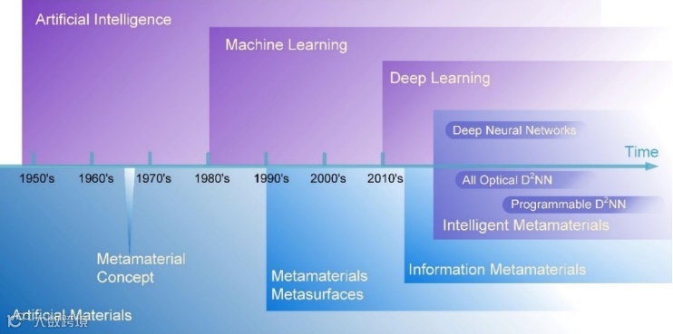 图1 超材料、人工智能的发展及其结合产生的智能超材料
