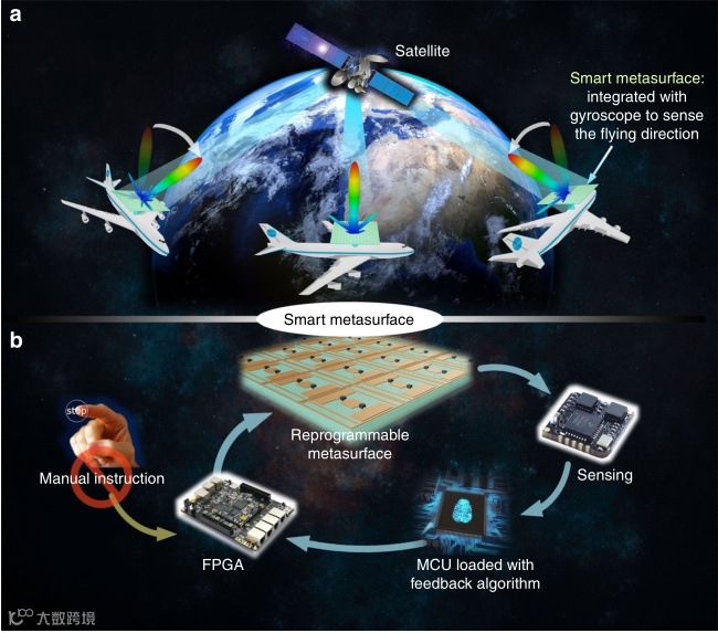 (a)有自适应功能且无需人工干预的智能超表面;(b)智能超表面反馈系统