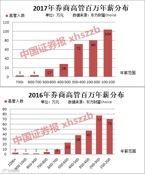 对比2016年数据,2017年券商高管中已无人再拿到千万年薪。