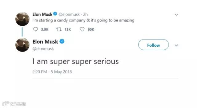 马斯克本人马上做出了反应,他在推特上发帖说,“我要开一家糖果公司,那会很棒的”,“我是超级超级认真的”。