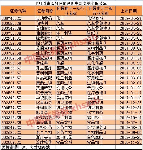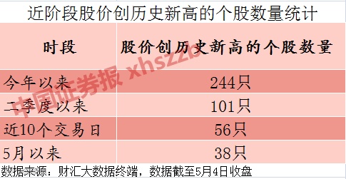 而在此背景下,股价勇创历史新高的强势个股数量,同样为数不少。统计显示,有多达101只个股股价二季度以来创出历史新高。而在五一长假之后的3个交易日里,股价刷新历史高位的个股,也达到38只。