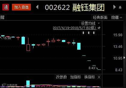 5月7日收盘,融钰集团公告第一大股东“持有的公司股票跌破平仓线”。