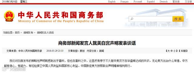 针对美国白宫29日发布的声明,商务部新闻发言人迅速回应表示,我们对白宫发布的策略性声明既感到出乎意料,但也在意料之中,这显然有悖于不久前中美双方在华盛顿达成的共识。