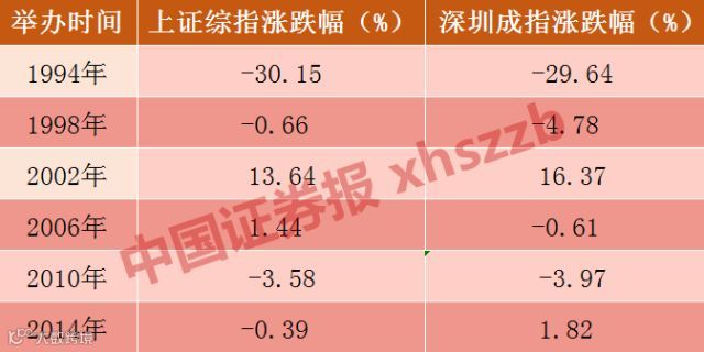 在A股经历的6次世界杯中,上证综指4次下跌,2次上涨。其中,1994年美国世界杯期间,上证指数跌幅高达30.15%,是跌幅最大的一次。1998年法国世界杯期间,上证指数下跌0.66%;2010年南非世界杯期间,上证指数下跌3.58%;2014年巴西世界杯期间,上证指数下跌0.39%,跌幅最小。