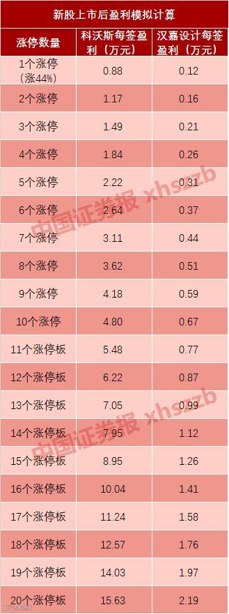 汉嘉设计的发行价为5.62元/股,其行业PE/发行PE值达到2.6,“折价”程度较高。这意味着只要汉嘉设计上市后能达到行业平均市盈率,就可以收获7个涨停板,每签获利约为0.44万元。