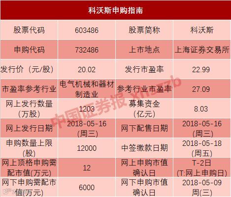 今天(5月16日)将迎来2只新股申购,分别是沪市主板的科沃斯(申购代码:732486)和创业板的汉嘉设计(申购代码:300746),顶格申购分别需要12万元沪市市值和21万元深市市值。