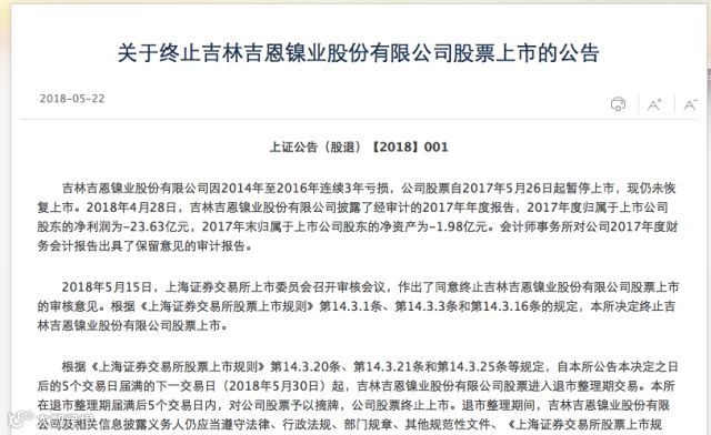 5月22日,上交所根据上市委员会的审核意见,决定*ST吉恩和*ST昆机股票终止上市。