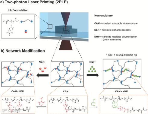 Jia, Y., et al., Covalent Adaptable Microstructures via Combining Two-Photon Laser Printing and Alkoxyamine Chemistry: Toward Living 3D Microstructures. Adv. Funct. Mater. 2022, 2207826.