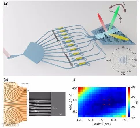 射频(RF)相控阵在一个多世纪前首次被提出,并已广泛应用于雷达和无线通信。红外线和可见光是光频率的电磁波,其波长比无线电波短3到5个数量级;因此,光学相控阵(OPA)可以带来比射频相控阵更高的精度。OPA可以以非机械的方式快速而精确地引导光线,因此代表了一种新型的紧凑固态二维(2D)光束转向技术,可替代包括微机电系统在内的传统机械光束转向技术。芯片级的OPA为固态光探测和测距系统开辟了一条有前景的道路,它在自动驾驶汽车、全息摄影、增强与虚拟现实、生物成像、自由空间光通信等领域有着广泛的应用。大视场、高光束质量、无混叠的二维光束定向是实现光学相干斑的关键。然而,由于不需要光栅瓣和旁瓣,目前的OPAs在视场和光束质量上仍然受到限制。传统的相控阵由相干发射体阵列组成,通过控制各发射体的相位,可以形成理想的远场辐射图。如果发射极间距为半波长或更短,可以带来无混叠180°视场,并且可以避免栅瓣。当发射极间距大于半波长时,在多个远场角处会产生强的相干干涉并产生栅瓣,从而导致混叠,限制视场。