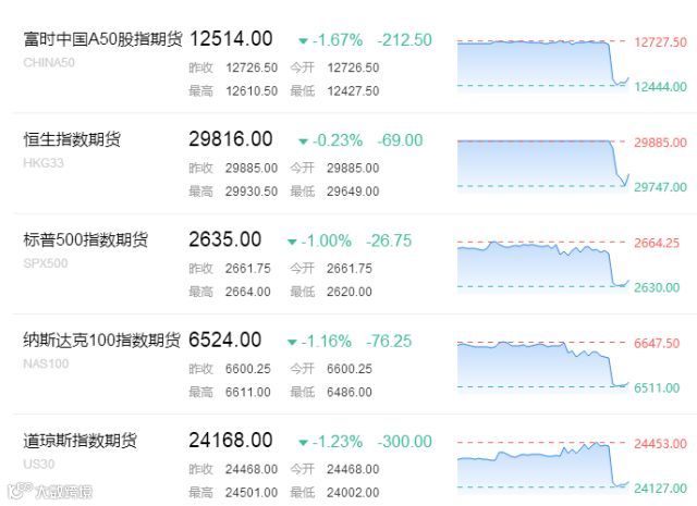 道指期货跌超300点,跌幅1.23%;