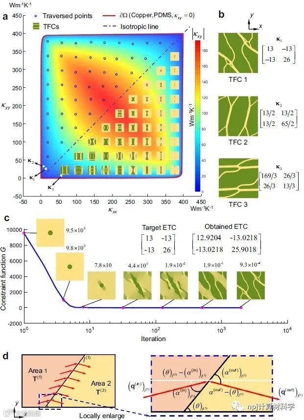 热超材料(或热超构材料)作为超材料家族的一员,具有强大的热流操纵能力,可用于设计许多有前途的热超构器件,包括热集中器、热旋转器、热斗篷等。热超材料对热流的非凡操纵能力得益于其内部特定热传导张量(κ)的空间分布。各向同性材料的导热行为在各个方向上都相同,难以直接操纵热流,而各向异性材料却可做到灵活控制。不幸的是,绝大多数天然材料都是各向同性的,这迫使人们想办法将几种天然材料混合起来,以获得具有等效各向异性热传导张量的材料,从而实现各向异性的导热行为。但如何快速和有效地将两种材料混合、设计出微结构符合要求的热超材料挑战很大。